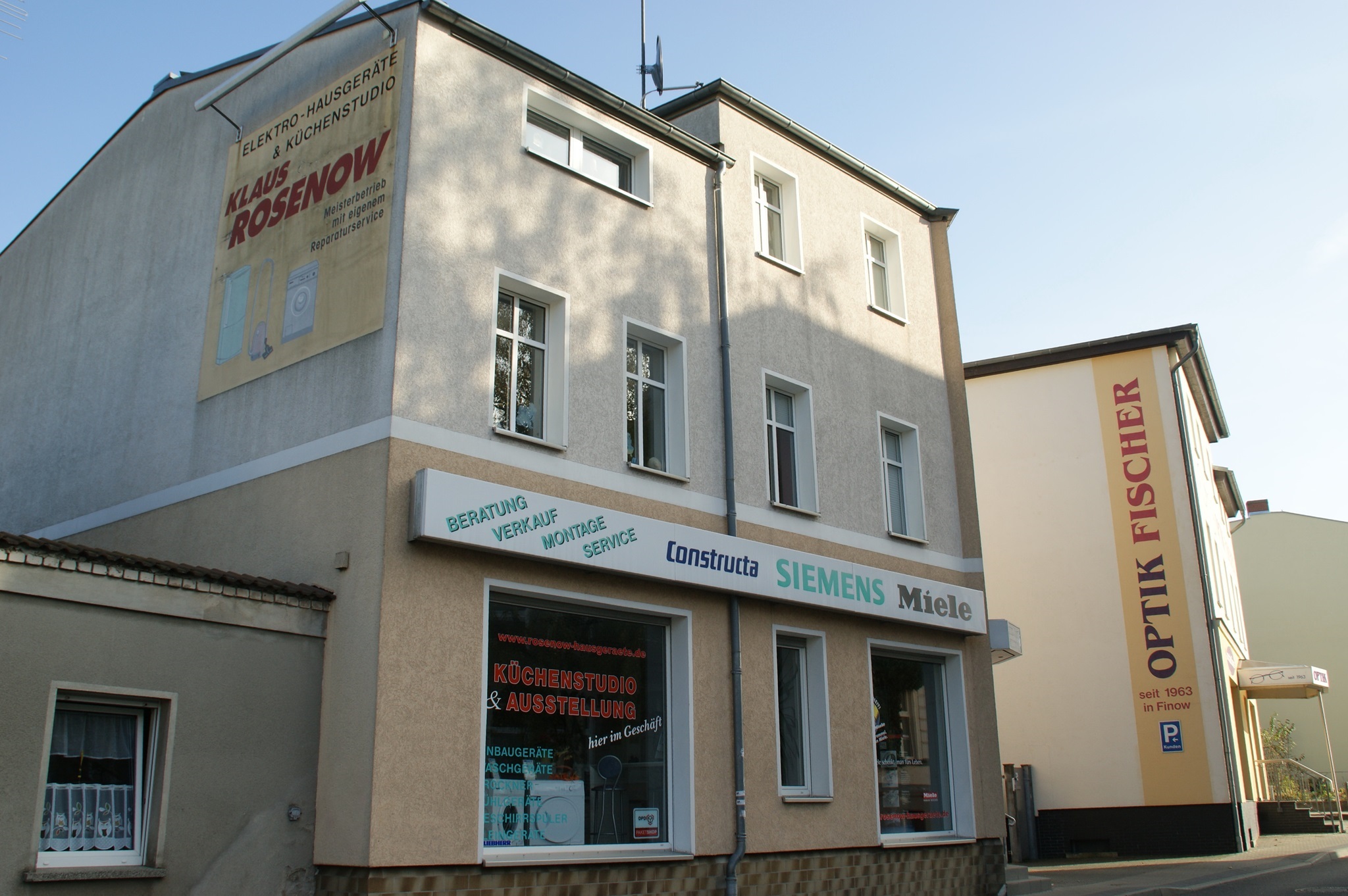 Mittlerweile sind wir auf den Verkauf, die Wartung von Elektro-Haushaltsgeräten sowie Planung und Montage von Einbauküchen spezialisiert. Die baulichen Voraussetzungen für diese Erweiterung wurden Anfang der 90-iger von Klaus Rosenow geschaffen. 1990 wurde zunächst eine Wohnung in der Dorfstraße 3 zum Geschäft verwandelt. 1993 folgte das Küchenstudio. Während der Familienbetrieb zu DDR-Zeiten vorrangig mit Reparaturleistungen für Finow und den Barnim beschäftigt war, hat sich das Blatt natürlich gewendet. 80-90 Prozent nimmt der Verkauf ein und der Rest entfällt auf die Dienst- und Reparaturleistungen.